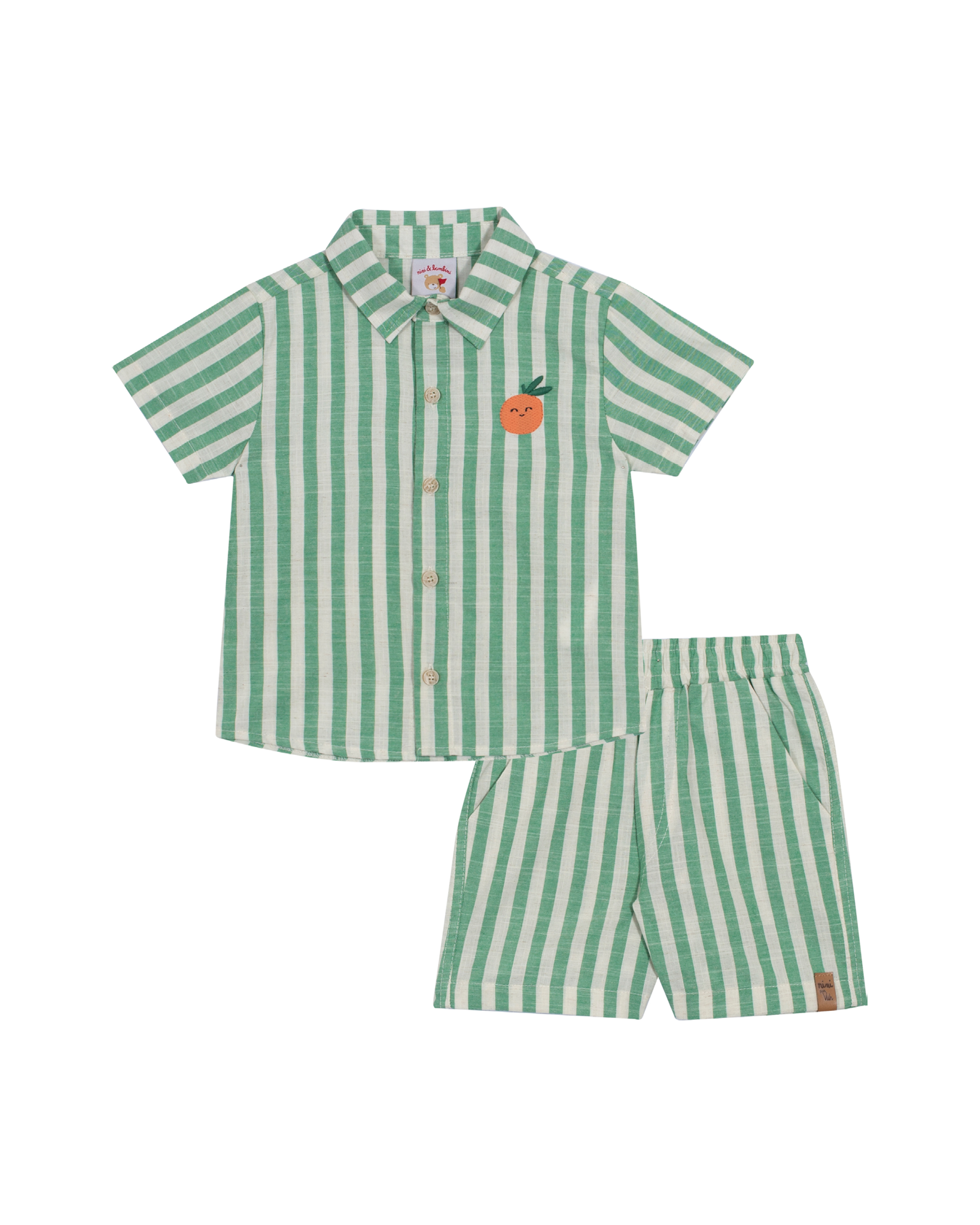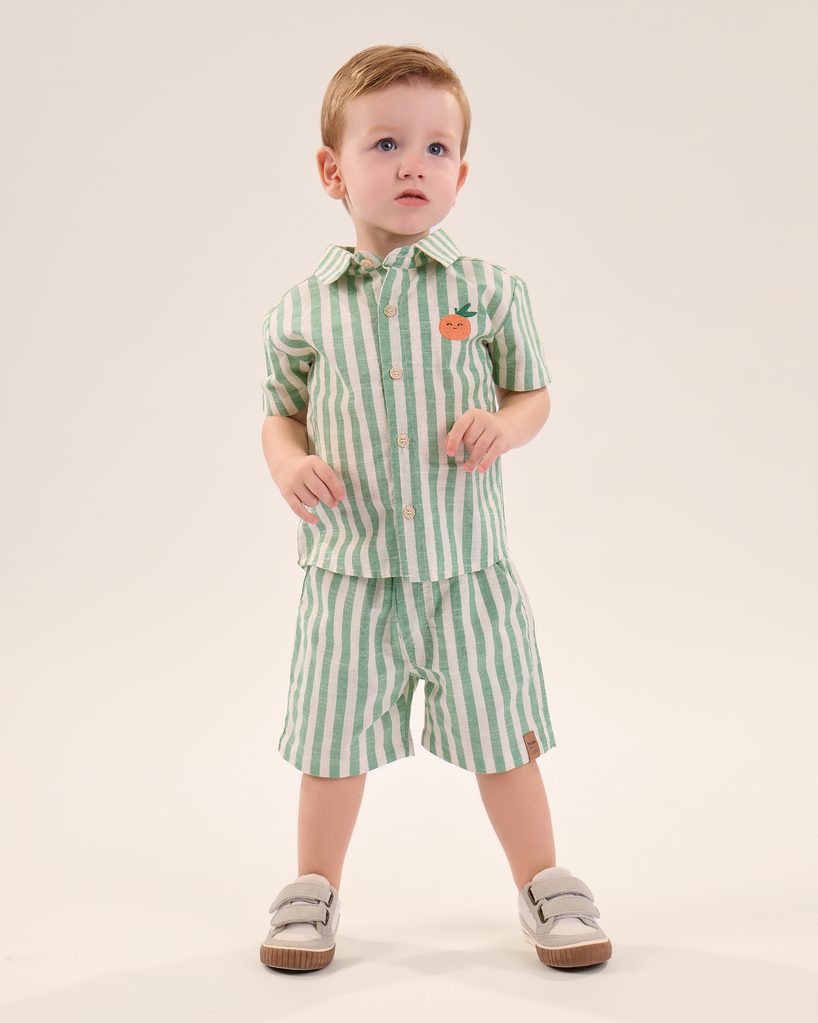 Conj. camiseta manga curta listrada laranja + bermuda verde
